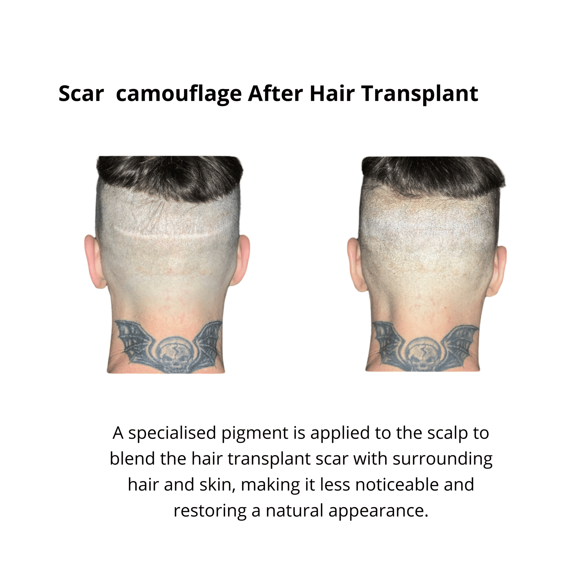 this treatment uses ultra-fine pigments that replicate the look of hair follicles, creating seamless coverage and balance across the scalp. it helps soften the appearance of linear donor scars and evens out areas where hair growth may be thinner or uneven.